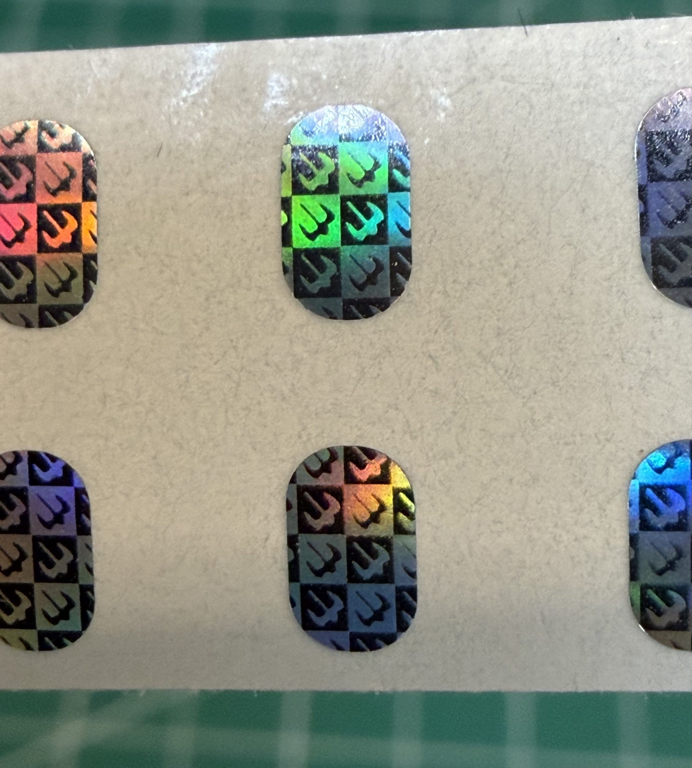 Official SWU Holographic Stickers. The only true size replicas on the market. Each sticker features the same rainbow holographic finish as real SWU cards, perfect for collectors or creators seeking authentic detail. Sold in sheets of 20, precisely cut and ready to apply.